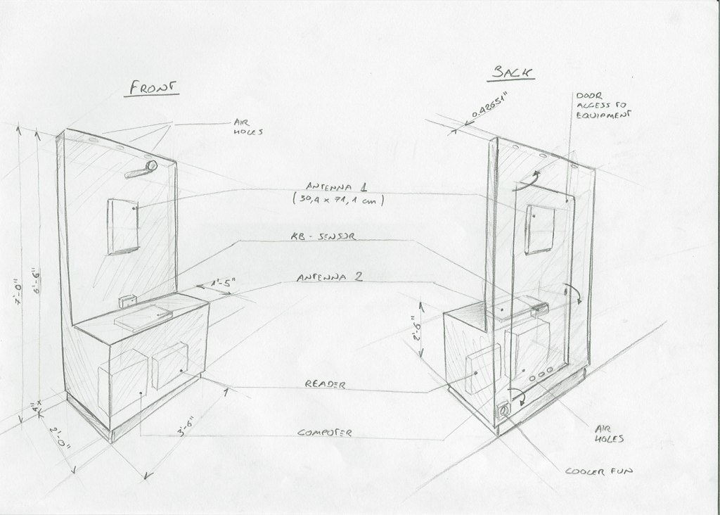 An RFID antenna is positioned within the fixture, connected to an RFID reader that is connected to a computer.