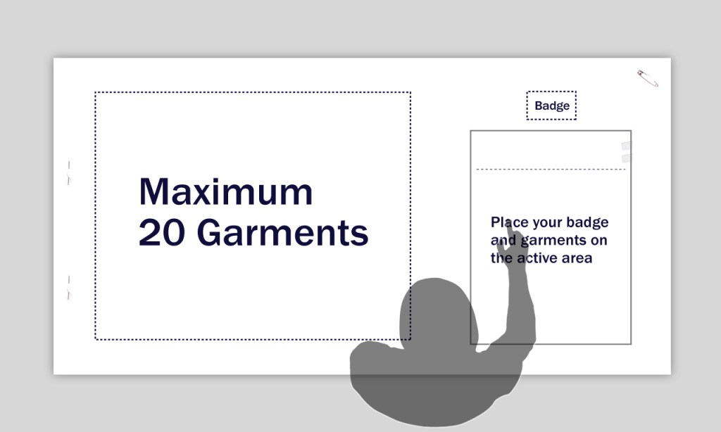 By placing the garment on the smart surface, the RFID antenna detects the RFID tag. The RFID reader transmits the unique identifier to a digital asset management database (DAM), which displays related product information on the screen of the smart fixture.