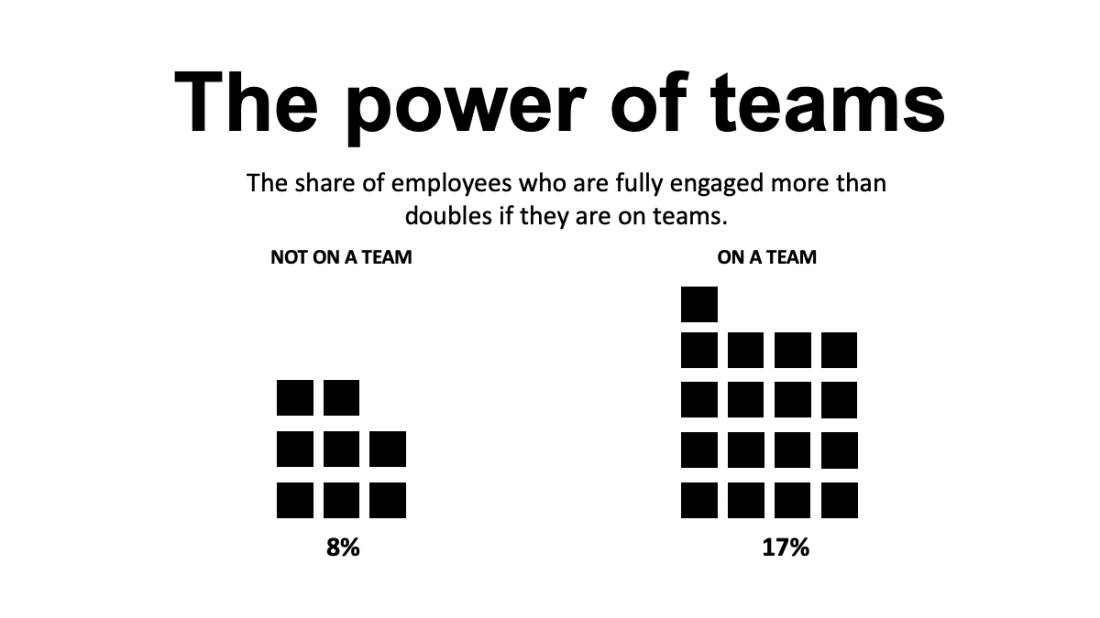 Employees who work in teams are more engaged than employees who work alone.