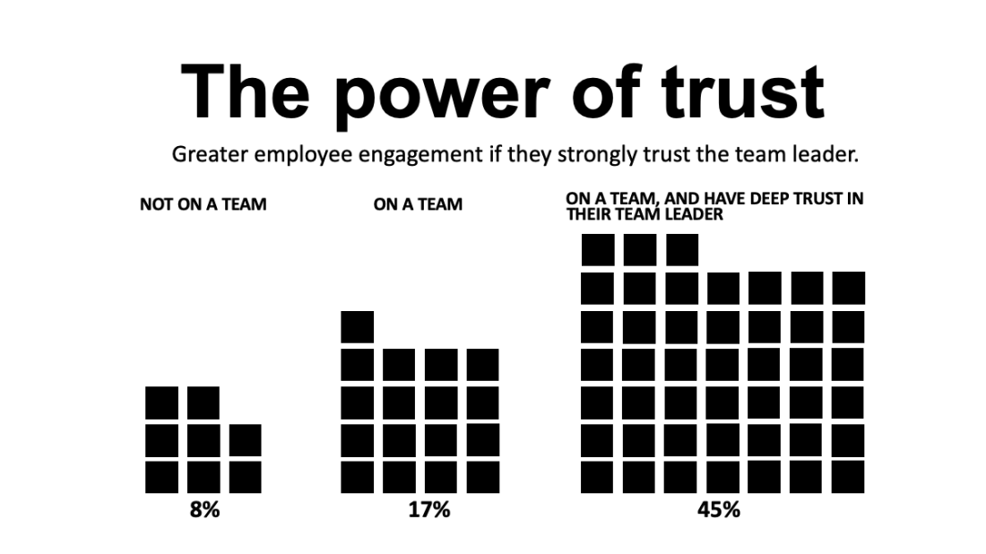 When people who work in a team experience a strong sense of trust with the team leader, the engagement levels increase exponentially.